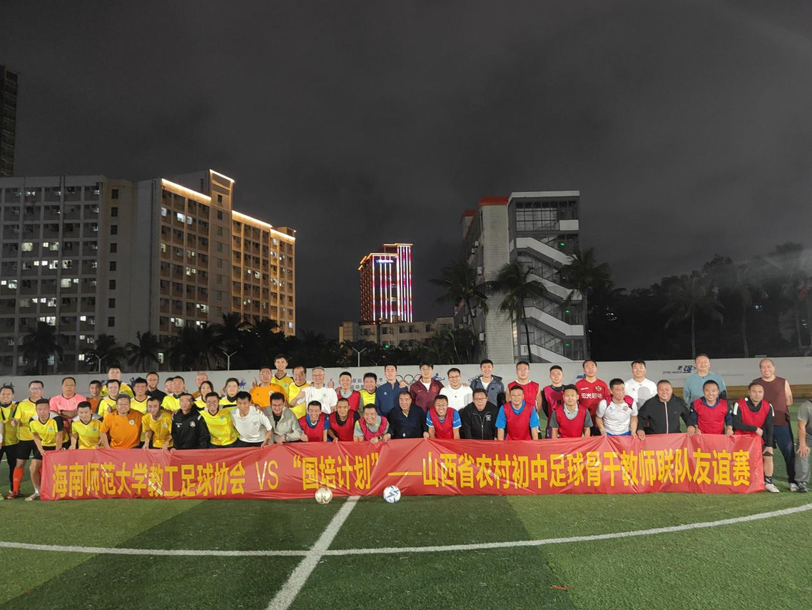 2025年12月13日19:00,学校教工足球队与“国培计划(2025)”山西省农村初中紧缺学科(足球)骨干教师培训项目参训教师组成的足球队在南校区运动场举行了一场足球友谊赛。本次比赛旨在促进晋琼足球文化交流,检验参训教师的学习效果,以赛促学,以赛促练,提升培训实效。